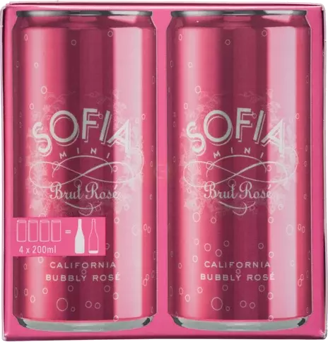 Sofia Mini Brut Rose Wine, California, 200mL Can Four-Pack, 12% ABV